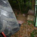 Die erste Schwierigkeit bei der Übung bestand darin, die Unfallstelle überhaupt zu finden. Die Einsatzstelle musste über einen ca. 1 km langen Forstweg angefahren werden, jedoch war dieser durch einen umgestürzten Baum versperrt. Während der Baum entfernt wurde, setzten drei Kameraden die Suche zu Fuß fort und konnten schließlich die Einsatzstelle entdecken. Ein Traktor mit Anhänger war bei einem Wendemanöver vom Weg abgekommen, eine Person wurde unter einem Holzstappel eingeklemmt, die zweite Person lag unter dem Traktor.